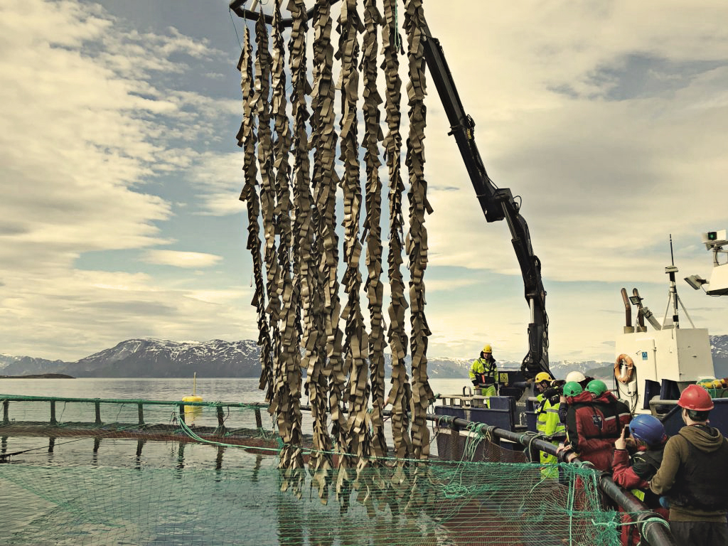Die Läusedecke trägt dazu bei, Lachsläuse zu vermeiden. Unsere Lösungen sind in Norwegen produziert und entwickelt – mit 100 % resirkulierbaren Materialien.